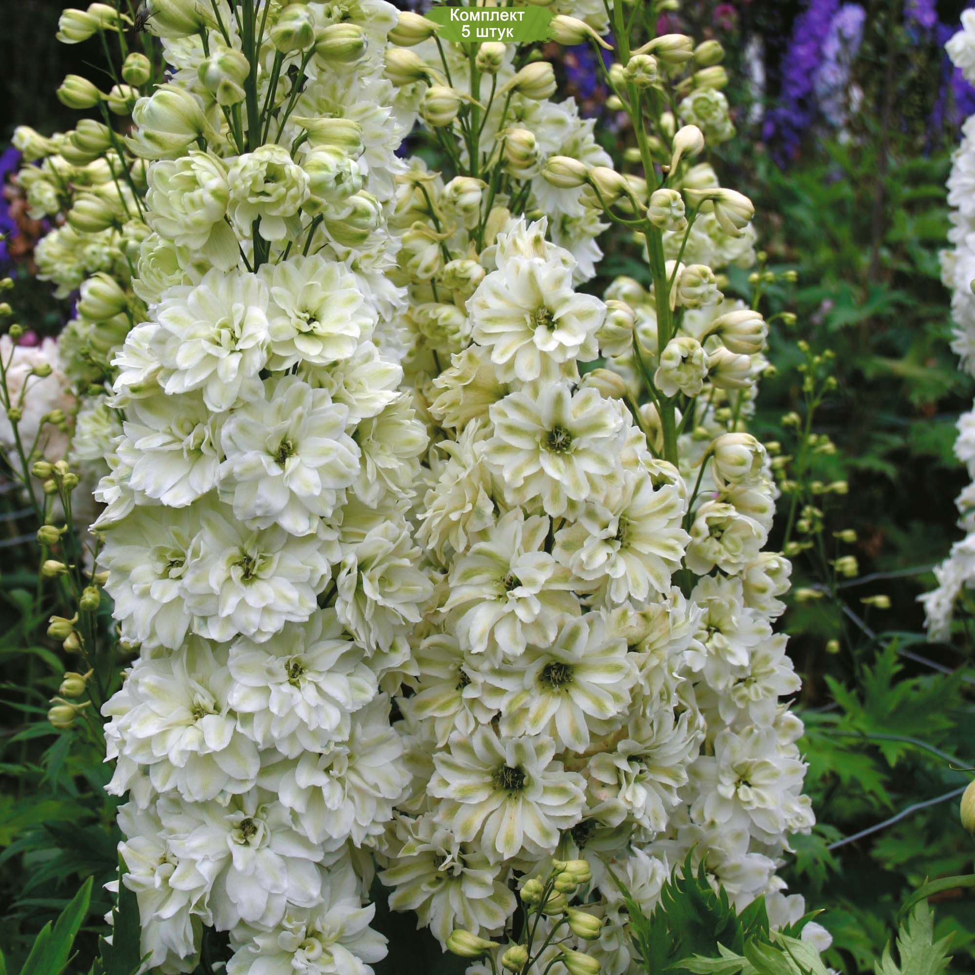 В комплекте вы получите 5 здоровых и крепких саженцев, готовых к посадке. Превратите ваш сад в цветущий оазис с дельфиниумом Грин Твист!
